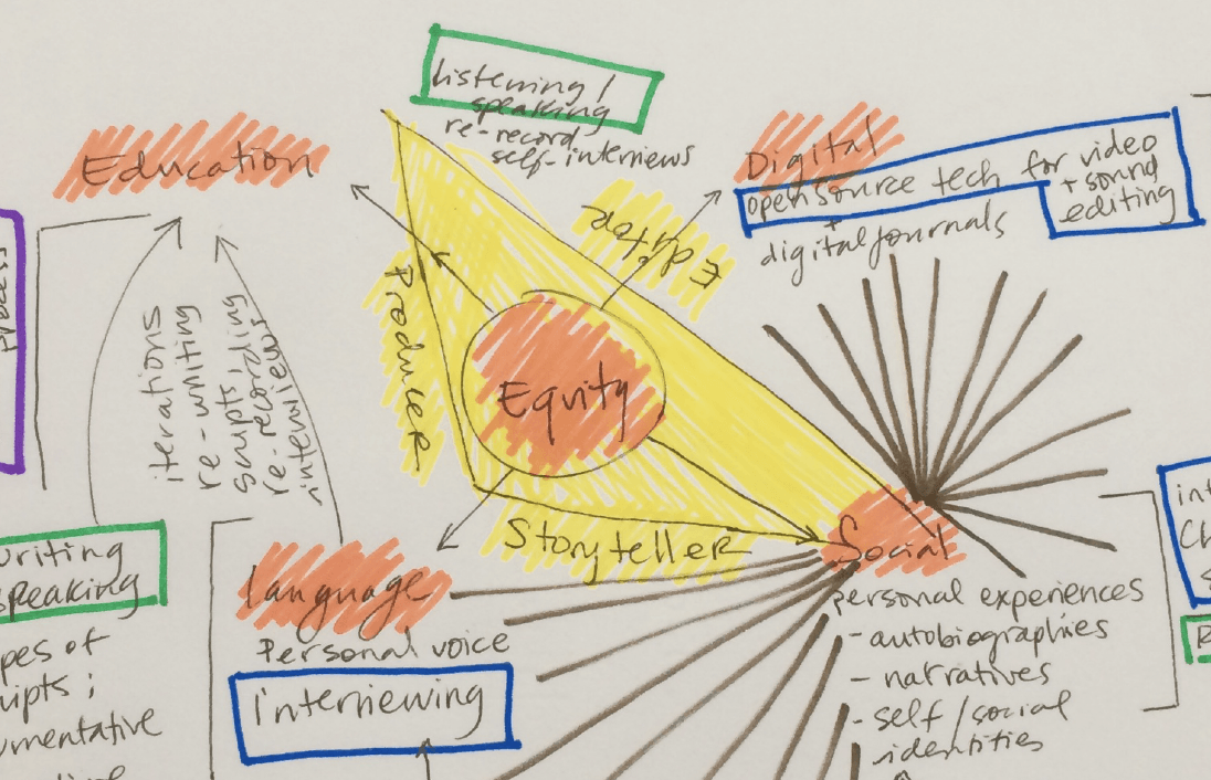 In this artifact, I developed a curriculum for the NYC Department of Education (grades 6-12) Language Arts program aligned with DoE common core standards. This artifact showcases not only the final product but also my thinking process, through a series of mindmaps that visualize the overlaps and connections between program and course goals, materials, and assessment; I used these visualizations to orient myself, develop ideas for authentic materials, and structure the curriculum. The final document is meant for administrators to validate course effectiveness and measure students’ learning, and for teachers to be able to tailor the curriculum to their classroom needs. This design has yet to be tested; one of the challenges of implementation has been the complexity of my visualization, which seems overwhelming to those outside the Art and Design fields, especially administrators. Even though I find a lot of value in this artifact, I believe that some of the process documentation I share here are unnecessary to the final purpose, which is implementation.
